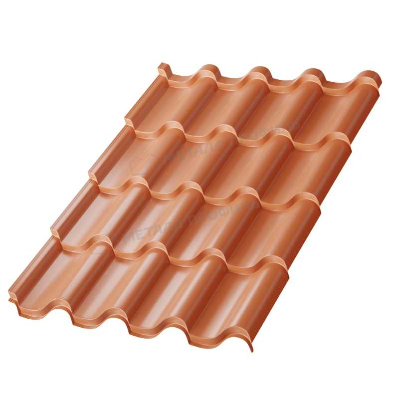 Металлочерепица Монтерроса-S от Металл-Профиль с толщиной 0,5 мм и покрытием NormanMP в цвете RAL 8004 (коричневая медь) представляет собой надежный и эстетичный материал для кровли. Она сочетает в себе прочность металла, долговечность покрытия и привлекательный внешний вид, имитирующий натуральную черепицу. Этот продукт идеален для частных домов, коттеджей и коммерческих объектов, обеспечивая защиту от атмосферных воздействий и долгий срок службы.